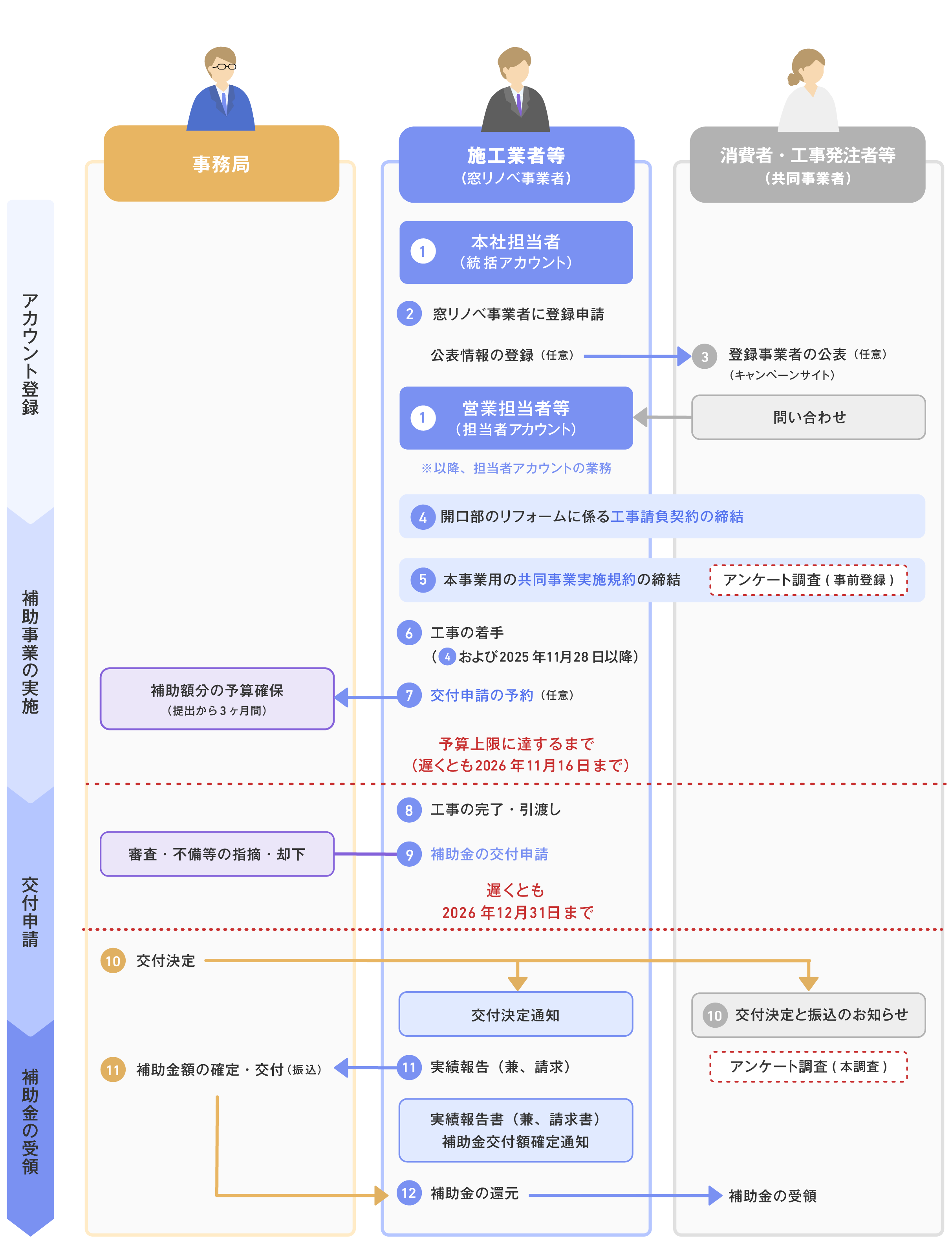 本事業のすべての手続きは、リフォーム工事を受注する施工業者等(以下、「窓リノベ事業者」)が、